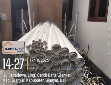 Karya Luhur adalah distributor terkemuka pipa PVC, PPR, pipa konduit berkualitas tinggi, dan aksesorisnya yang berlokasi di pulau Bali yang indah. Komitmen kami terhadap keunggulan memastikan bahwa kami menawarkan produk terbaik yang tersedia di pasaran, menjamin daya tahan dan keandalan untuk berbagai aplikasi.
