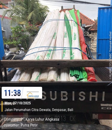 Selain itu, kami menawarkan layanan pengiriman yang andal yang mencakup seluruh wilayah Bali. Di mana pun proyek Anda berada di pulau ini, Anda dapat mengandalkan Karya Luhur untuk mengirimkan material Anda secara efisien dan tepat waktu. Kami memahami bahwa waktu sangat penting dalam proyek konstruksi dan renovasi, dan kami berupaya memastikan Anda menerima pesanan Anda saat Anda membutuhkannya.
